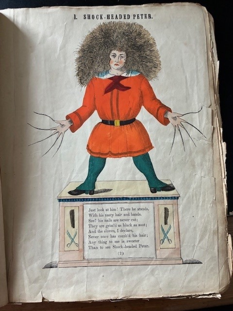 Struwwelpeter by Dr Heinrich Hoffman gave me nightmares. The terrifying illustrations are referred to on the cover as “funny pictures” for little children, which I found anything but funny. Characters with huge scissors aimed to cut off the thumbs of little Suck-a-Thumb. My goodness one would have needed a few trigger warnings on that book!